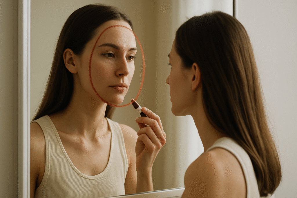 Najłatwiej stanąć przed lustrem i związać włosy. Można też obrysować twarz szminką na lustrze albo zrobić selfie i narysować linie pomocnicze. Pomiar szerokości czoła, policzków i żuchwy w stosunku do długości twarzy daje zaskakująco dużo informacji.