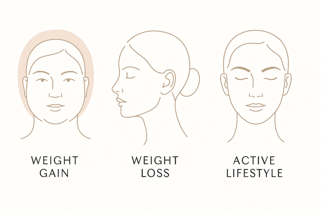 Kilka kilogramów więcej może zaokrąglić policzki, a utrata wagi wyszczuplić rysy.