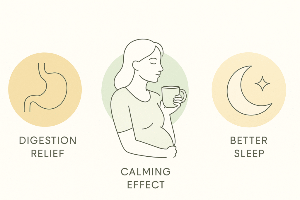 Działa rozluźniająco, co pomaga w trakcie typowych, ciążowych problemów z perystaltyką.