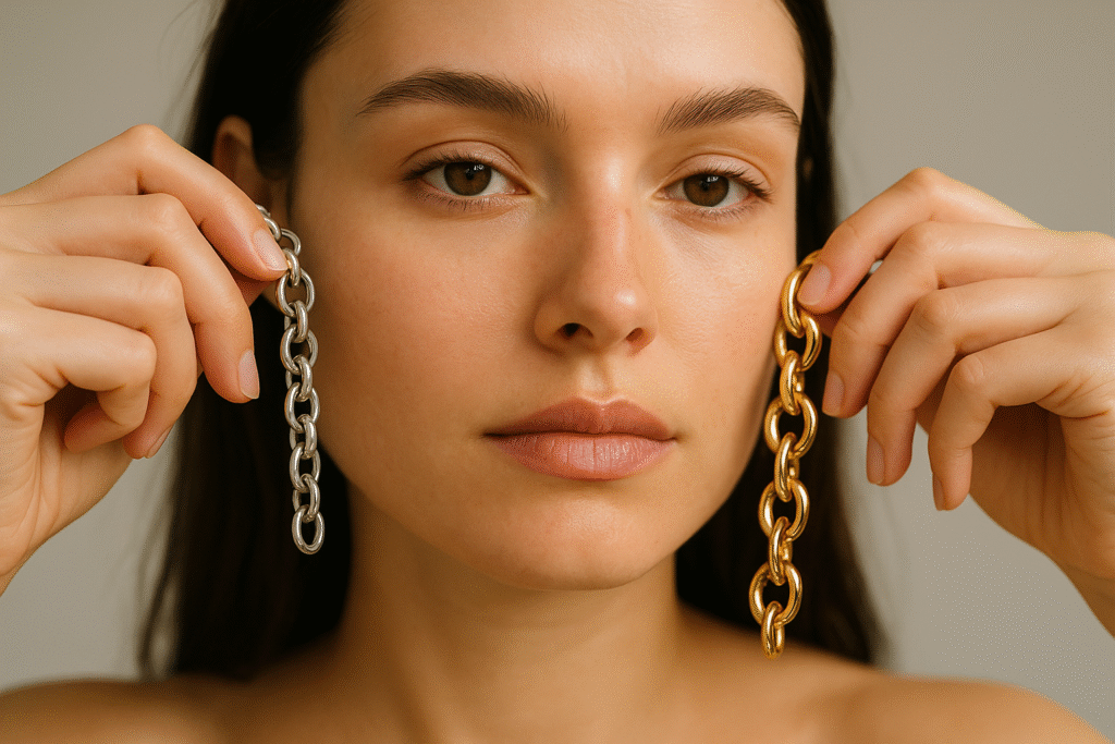 Złap do ręki dwa naszyjniki – złoty i srebrny. Stań przy oknie i przyłóż je do twarzy. W którym kolorze wyglądasz zdrowiej, bardziej promiennie? Złoto wskazuje na typ ciepły, srebro – chłodny.