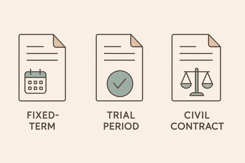 Umowa na czas określony, okres próbny ≤ 1 miesiąca i umowa na zastępstwo