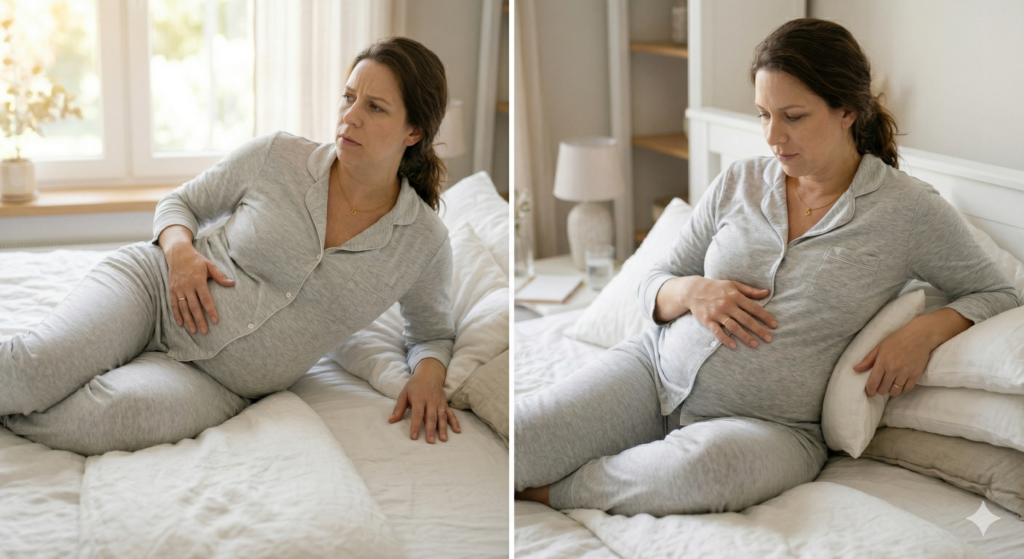 Takie objawy nie muszą oznaczać od razu czegoś groźnego, ale są informacją, że aktualne ułożenie nie służy Twojemu komfortowi. W ciąży lepiej reagować spokojnie, ale uważnie.