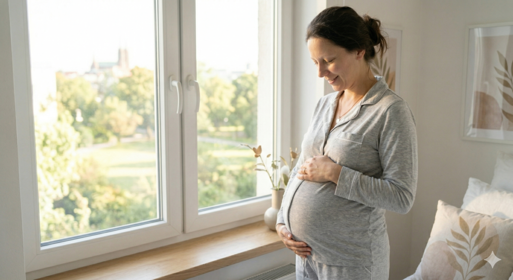 Czasem problemem nie jest sam bok, tylko warunki snu. Zbyt ciepła sypialnia, ciężkie powietrze i brak przewietrzenia potrafią skutecznie zepsuć noc. W ciąży wiele kobiet szybciej odczuwa przegrzanie, więc świeże powietrze naprawdę pomaga.