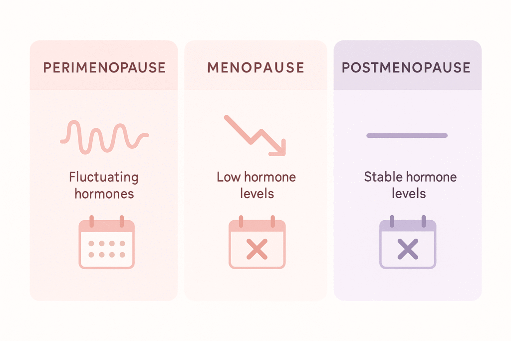 Różnica między perimenopauzą, menopauzą a postmenopauzą