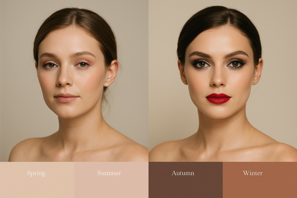 Analiza kolorystyczna dzieli typy urody na cztery podstawowe grupy: Wiosna, Lato, Jesień i Zima. Każda z nich ma charakterystyczne cechy – kolor skóry, włosów i oczu – które determinują najlepszą paletę barw w makijażu.
