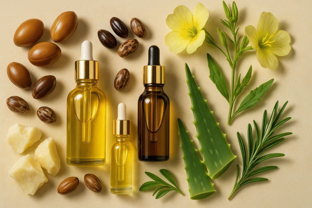 - olej arganowy, jojoba, rycynowy, lniany, oliwa z oliwek,