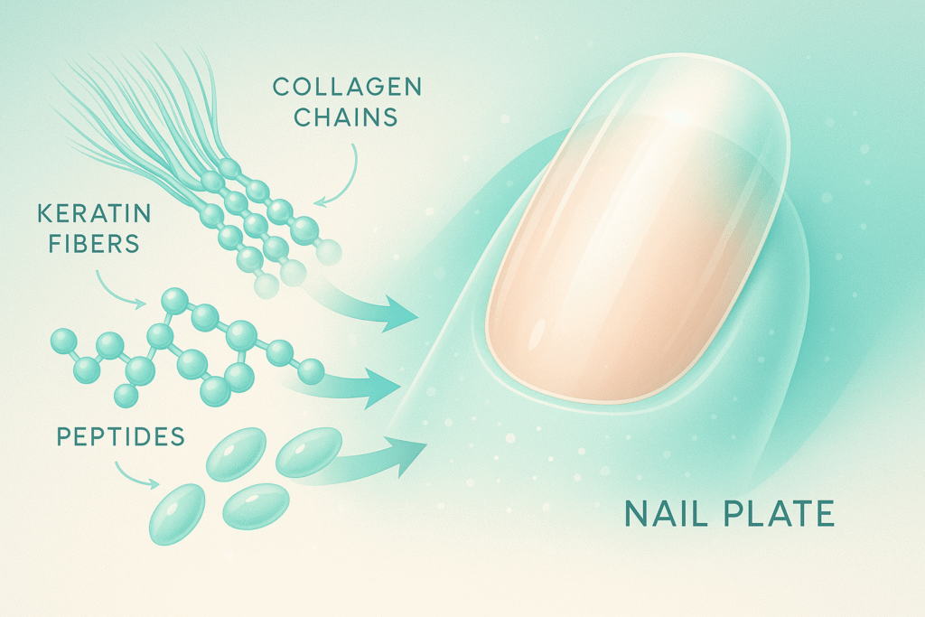 - kolagen, pseudokolagen, fitokeratyna – poprawiają elastyczność i wygląd płytki.