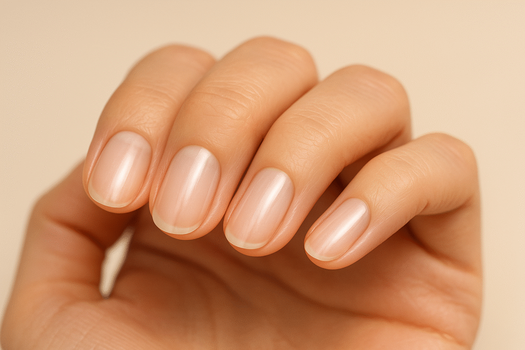 Po zabiegu paznokcie zyskują naturalny połysk, przypominający różową perłę. Stają się mocniejsze, gładkie i zdrowsze.